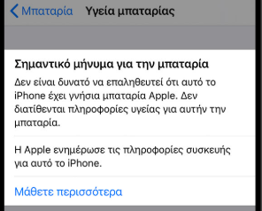 Με απλά λόγια, είναι απλώς ο τρόπος της Apple να σας ενημερώσει ότι ένα εξάρτημα αντικαταστάθηκε εκτός του εξουσιοδοτημένου δικτύου σέρβις της.